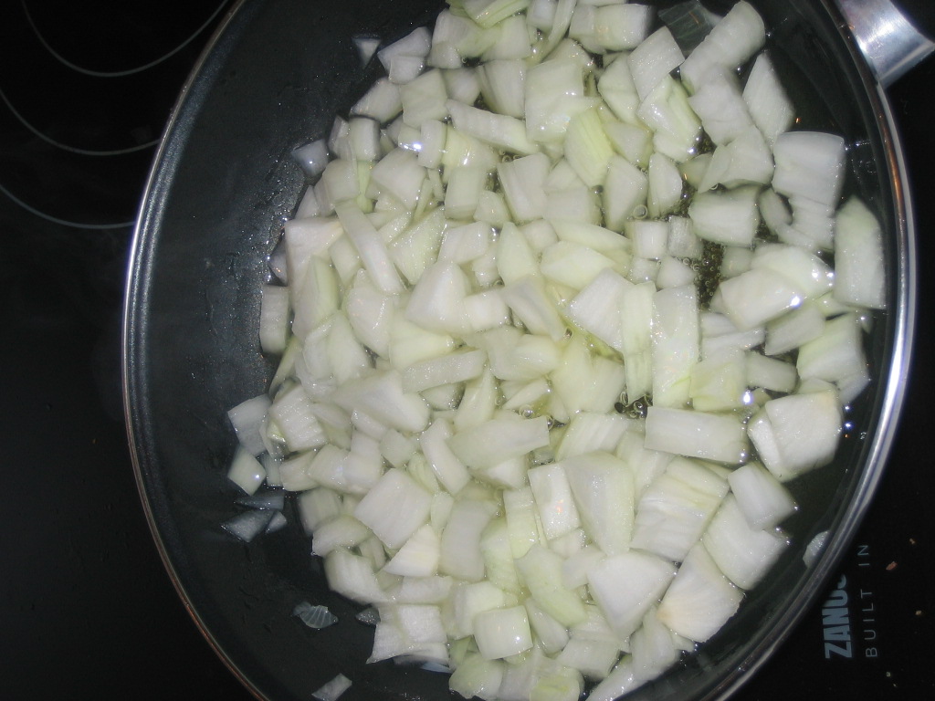 3. With abundant olive oil fry the onion.