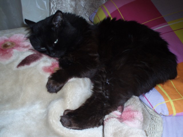 Also we have the least family member. It's a cat. His name is Masiania. And it's a boy. We took him from a street when he was a kitten.
