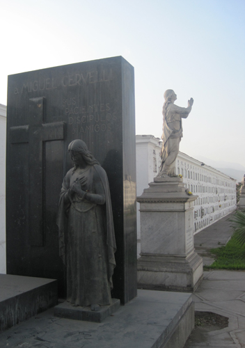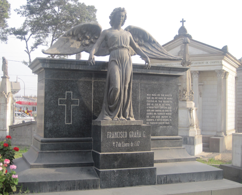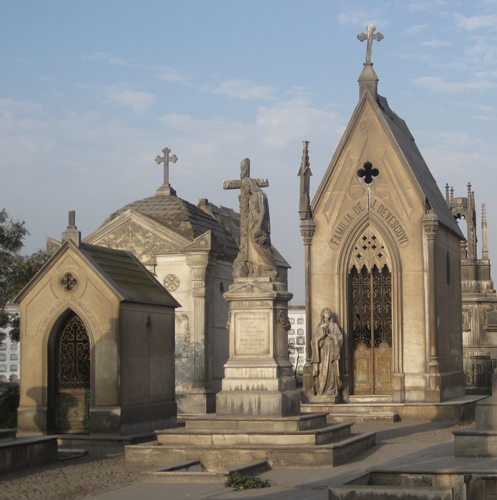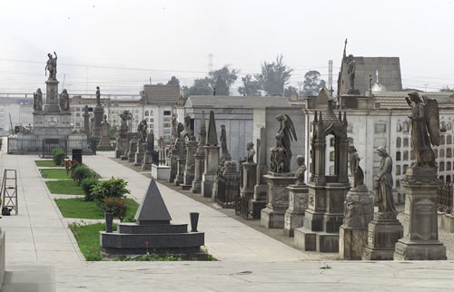 In this cemetery were buried the most important personalities of the century XIX and the aristocracy (rich people) from Lima. It’s a real city with streets and avenues. It has 150 000 m2, more than 685 graves, 393 mausoleum and 72 historical monuments.