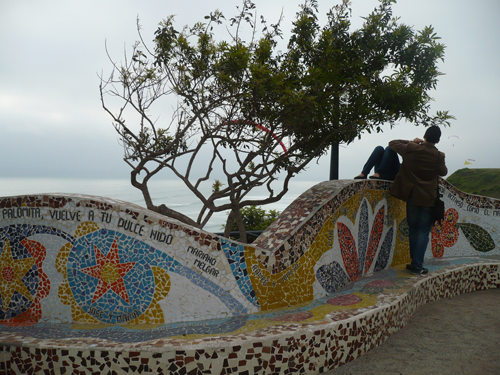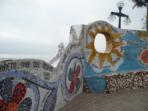 In the surrounding it’s possible to see some romantic quotes, from peruvians poets, which are artfully decorated with colorful mosaics on the wall