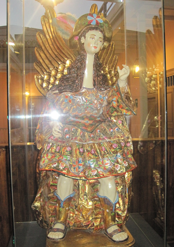 Hilario Mendivil is considered one of the most important “craftsman” in Perú and in the world. His work is mainly religious, Virgin, angels, Birth of Jesus. But he has a particular point of view. All his saints has a long neck.