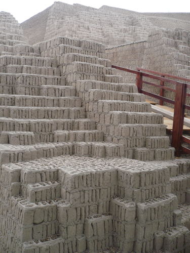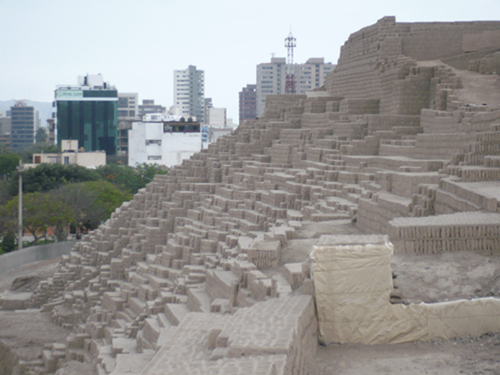 "Pucllana" is divided in two areas which are separated by a great wall of adobe bricks. The first section is an administrative area. This contains a series of plazas and enclosures that was used for public meetings to discuss about the production of food.