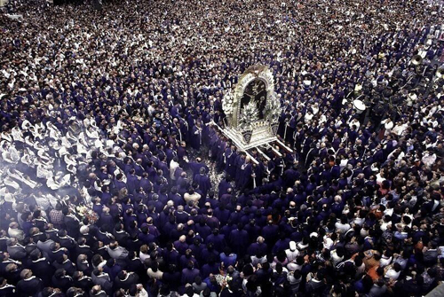 Thousands of Faithful are dressed in purple and sing hymns and pray as they accompany the image. The original image was fixed in the 20th century by artists italians and this is saved in the Nazarenas Church.