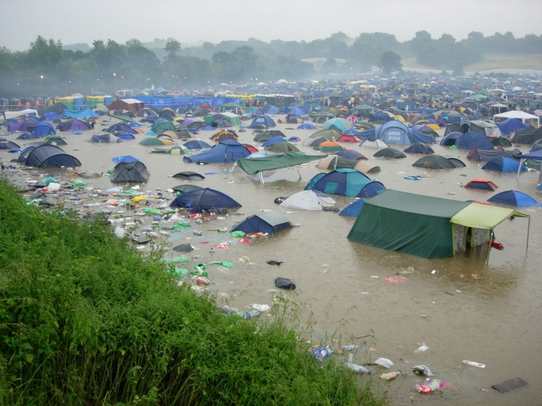 To make the most of the occasion people tend to stay on the festival site and sleep in tents - or what we call camping - and this is when the rain can make things a little messy.