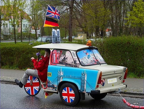 This week it was German bicycle designer Didi Senft and his latest invention, the Royal Rickshaw. It is constructed from, among others things, the rear of a Trabant 601 car. It is dedicated to Prince William and Kate Middleton.