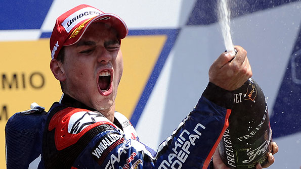 Lorenzo's ride was one of determination and concentration as he patiently reeled in and passed Stoner at the front with some relentlessly consistent lap times. From lap 15 to 23 he went on a charge, which he described in his online blog as "the return of the hammer" – a reference to his "hammer and butter" approach to riding. It was appropriate because, as I said at the time in my column right here on this website, last year he opted for butter and melted.