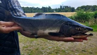 A Scottish fishery board says it has taken the "first ever footage" of a non-native species of salmon spawning in UK waters.