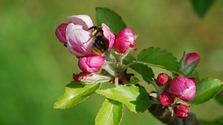 Common carder bee on an apple tree