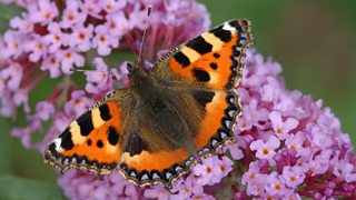 The small tortoiseshell is one of the UK's most colourful butterflies. It is very familiar too, thanks to its close association with people. Small tortoiseshells hibernate in our buildings, breed in wayside and farmland nettle patches and then throng to our gardens to feed up on nectar before winter returns.