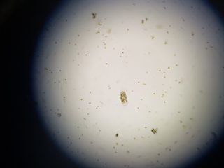 LIFE! Within only a matter of weeks the pond had become a habitat for thousands of creatures. These tiny organisms are protozoa – tiny life-forms, many of whom travel around as eggs on pond plants or simply as detritus blown about in the air. When these eggs hit a new pond, they spark into life and blossom. Among the smallest I saw were Coleps – a protozoan that hoovers up detritus. In the image above there are hundreds of them gathered around an old leaf which they were busily breaking down. The second image shows stylonychia – these large protozoa are like angry sharks. They regularly chase down other protozoa using apparently razor-sharp senses.