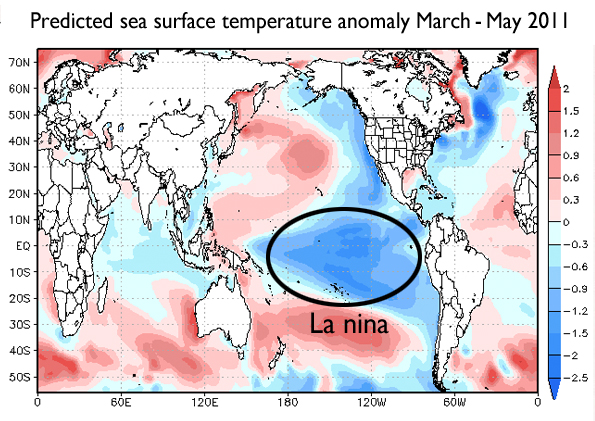 So far, it's been a very cold start to the year globally. With La Nina, an area of cold water in the tropical Pacific which depresses global temperatures, expected to continue well into 2011, the Met Office's global forecast is already beginning to look too warm.