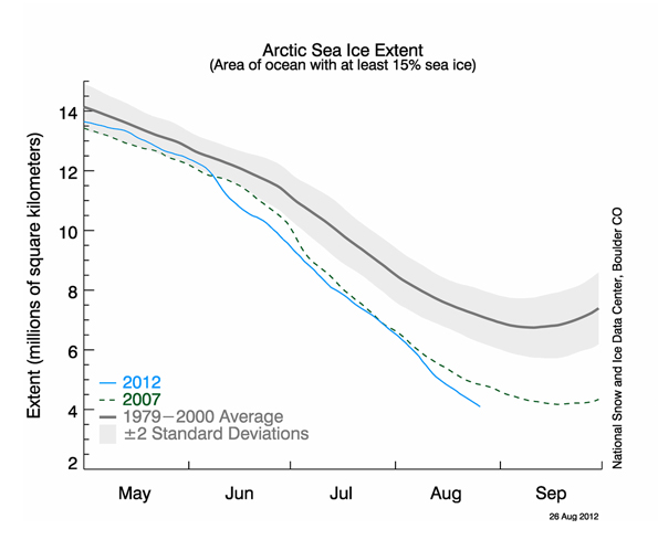 One is linked to melting Arctic ice, which fell to a satellite record low on Monday.