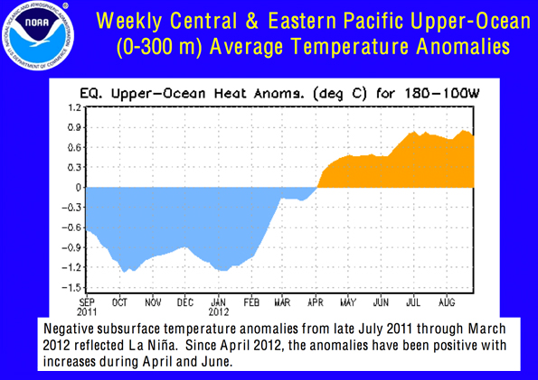 This would be higher than the peak in January 2008 of 4.5 metres above normal, but quite a bit lower than the record which was set in November 2000 of 5.4 metres above normal.