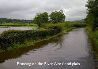 Heavy rain on wednesday led the River Aire to burst its banks into the flood plain near Skipton, shown in the picture below.
