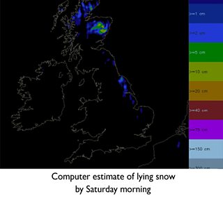 By Friday night, the North York moors and Wolds could have a slight covering of snow, as you can see on the figure below, although this will melt very quickly on Saturday.