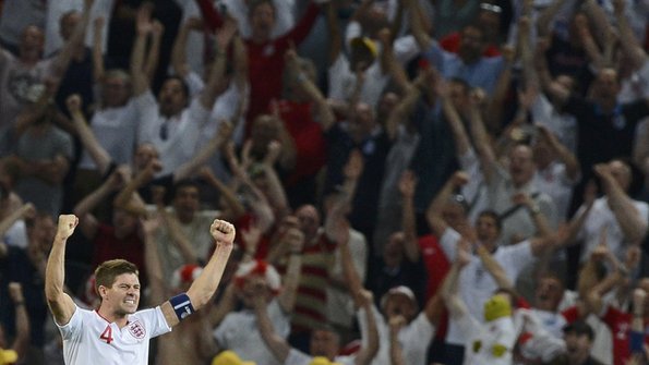 One of the enduring images of England's Euro 2012 campaign has been the sight of Steven Gerrard pumping the air with his fists, teeth clenched in a mask of triumph, with celebrating supporters for a backdrop.