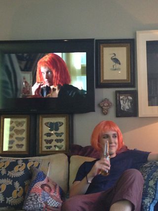 Day 4 of Educating Grimmy and I'll be honest, I'm flagging. Last night, in the name of fantasy, we watched sexy and quirky sci-fi, The Fifth Elementat the recommendation of the listeners and Daniel Radcliffe. It wasn't quite the roaring success I hoped it might be after the first two movie nights. Grimmy's concentration was split about seven different ways although to be fair, Chris Starkwas being made up to look like Milla Jovovich’scharacter Leeloo for most of the film.