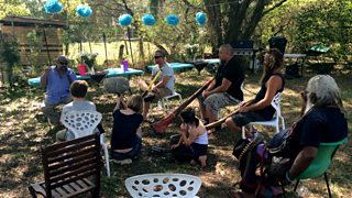 The following day I get my first blow of the didge under the tutelage of gifted female player Shannon Truscott at the home of producer Parris MacLeod and singer Chontia Robinson in what can be best described as a studio in a tree-house set deep in a forest in the Sunshine Coast region. It turns into a very musical evening as Mark and Stephen have also brought out their 'horns' and many great sounds can be heard throughout the evening. At one point there is an inspired improvised duo performance featuring didgeridoo player Brock Jenson and Parris MacLeod on piano...their piece ends my radio feature and in many ways captures how 'at one' the didge is with the sound of nature ... a chorus of singing cicadas join in with them to make sweet soul music. It's a timeless sound and I would encourage everyone at some point in their life to give the didgeridoo a 'blow' and experience as Stephen Kent would say 'the sound of Mother Earth'.