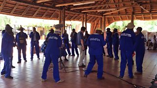 My colleague Roger Short and I are recording the Balete Traditional Group in Ramotswa village, south of Botswana’s capital Gabarone. It’s an ensemble of 16 players today, but I'm told the group often stretches to 25 players. They are farmers by trade, and we're very lucky that they have agreed to give up part of a precious working day to share their unique musical style with us.