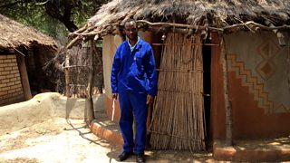 Each player has a copper pipe (similar to a length of plumbing pipe) that plays one particular note. In groups of four players they play a series of tones, each group playing an octave lower than the previous. The players know their individual rhythm, and how they fit within the greater tapestry of sound they create. They are directed by the Muklaba, the director and tuner of the group. The singers join in and we hear about the death of a villager by a leopard. In another the sorrowful story of a dejected suitor.