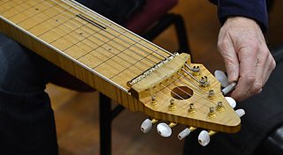 John's father was stiff competition for the young musician in his early years: 'I couldn't rival him as a pianist, so I went and learned the church organ', he told me while unpacking instruments in the BBC's Maida Vale studios just before Christmas. There's some electronics wizardry he's putting together plus a mandolin (which he always travels with), a ukulele and an instrument I immediately covet, a 'collapse-steel' - a lap steel which folds in two and pops into a handy travel-sized bag. This is part of John's collection of 'small' instruments and he's going to play them and the studio's Steinway, as well as choose some discs for Late Junction's New Year show.