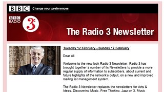 As Controller Roger Wright explained, the change brings the Newsletters on to a new, more robust content and subscriber management system, and will give subscribers a pithier, smarter-looking regular briefing about the breadth of content on Radio 3, with clearer sign-posting of related content across genres - so you shouldn’t miss a beat.
