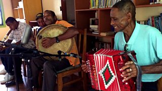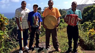 Like many people here, Isma Alie, the most famous accordion player on Dominica, is a farmer. He lives in a tiny village, literally at the end of the road, cut off by sea cliffs, growing bay trees and selling the oil for disinfectant. Jing-ping is the national dance music of Dominica and is still popular at festivals and carnival time in Dominica in local communities.