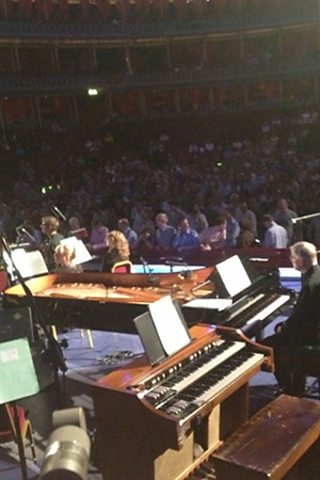 The live re-mix would consist of recordings of the evening's performances made by 12 volunteers each using a mobile phone to make one short recording from the build up to the evening, and one recording from each of the 6 performances. The 12 volunteers would be situated in different places in and around the audience. The audience at the Royal Albert Hall would also be asked to contribute to the piece by sending themselves a SMS text message when cued by André Ridder, the conductor, therefore creating a ripple of around 800 SMS alert sounds to accompany the smartphone recordings. The original plan was for the 12 volunteers to play their 7 recordings from where they were located in the audience, but some testing revealed that Radio 3's microphones wouldn't pick up the mobile phones, so each volunteer made their way to the stage after Cage's 4'33 and was given a microphone.
