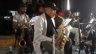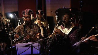Jazz on 3 invited UK reeds player Shabaka Hutchings to sit in with the Arkestra for their Sun Ra centenary session. On 17th June 2014 Shabaka joined the band for a rehearsal followed by a concert and the subsequent day went into the studio with the band.