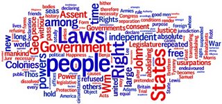 - The picture is a map of the Declaration of Independence, made using Wordle.net. The larger the word, the more often it is used in the document. A map like this is meant to reveal the main themes of the document analysed.