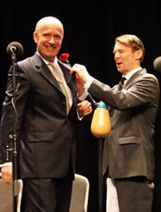 So, here we are in 2009 with the two best Kenneth Williams and Kenneth Horne impersonators, an audience of hundreds, in the historic Radio Theatre in Broadcasting House, and before my eyes (and ears) it is happening. I imagine in my mind that it's the Sixties, pretending it's for real, which, if you close your eyes, it certainly is. I've since had emails saying as much. Within a few hours one of Williams's friends wrote, "About a third of the way into listening I forgot it wasn't Williams or Horne... it sounded to me like a bona fide 60s episode! Utterly authentic."