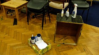 - The picture shows some of the stuff used to make noise in the studio. During our visit to the Archers' home in Birmingham dozens of photographs were taken, many of which feature pictures of cast members (and an ironing board).