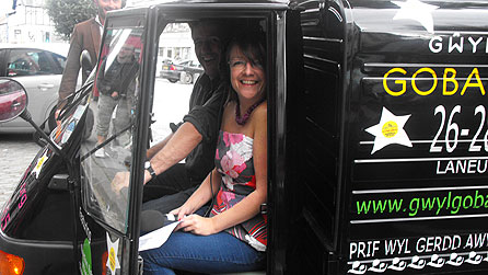Chwarae teg i Tudur - mae o'n gallu bod yn neis weithiau, ac fe wnaeth o drefnu sypreis i mi … fe drefnodd fod yr hyfryd Rhys Meirion yn pigo draw, ac fe ges i fynd am dro mewn "Twc Twc", oedd yn brofiad gwbwl newydd i mi. Fe nes i wir fwynhau y profiad, a gobeithio gai fynd eto.