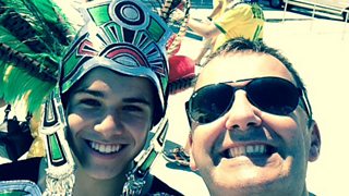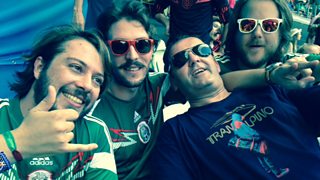 Ac eithrio criw o Wlad yr Iâ oedd mewn peryg o doddi yng ngwres canol dydd y trofannau ar un ochr, a theulu estynedig o Zurich o'n blaenau, roedden ni yng nghanol Mecsicanwyr gan gynnwys tri brawd oedd yn edrych yn rhyfeddol o debyg i'r Bee Gees ifanc.