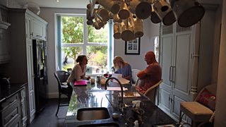 Nhw ddewisodd y lleoliad ac roedd y croeso a'r panad yn gynnes yn eu cegin braf. Dyma le ddechreuodd y freuddwyd o sefydlu ysgol berfformio a chreu pob math o gyfleoedd i blant berfformio. A dyma le ddechreuo ni sgwrsio a does na'm lle gwell am sgwrs na chegin nagoes?