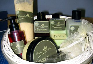 We thought we'd bring you a glimpse of one of Heavenly Herbal's gift sets.The show's art department worked furiously, filling the bottles with bath product, as they had many gift packs to create.