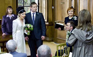 We've got a few sneaky facts about filming the wedding scenes earlier this year. Andy and Gabriella's wedding-which-was-not-to-be was filmed at Strathleven House in Dumbarton, close to the River City set. On the day of filming hot water bottles were much in evidence, because the wedding scenes were shot on a shivery February day. Gina's costume continuity sheet will give you an idea.