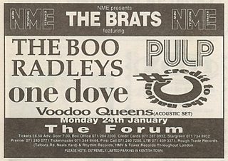 Boo Radleys with Pulp, One Dove and Credit To The Nation appear the Forum in London. A warm-up for the inaugural NME Brat Awards.