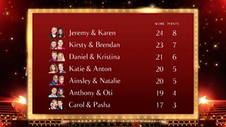 Kellie and Kevin’s Charleston and Helen and Aljaz's Foxtrot, looked like early contenders with 8’s across the board from the judges. However, Jay and Aliona’s Jive broke box office records with a score of 37, securing a big fat 10 (the first in the series!) from Bruno.