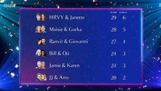 Bill and Oti and Jamie and Karen took joint fourth place with a score of 24, while JJ and Amy landed bottom of the leaderboard with 20.