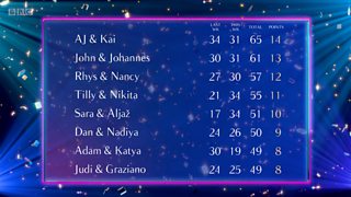 Meanwhile, Nina and Neil landed down the other end of the leaderboard with a combined score of 42, with Ugo and Oti just one step ahead with a score of 43.