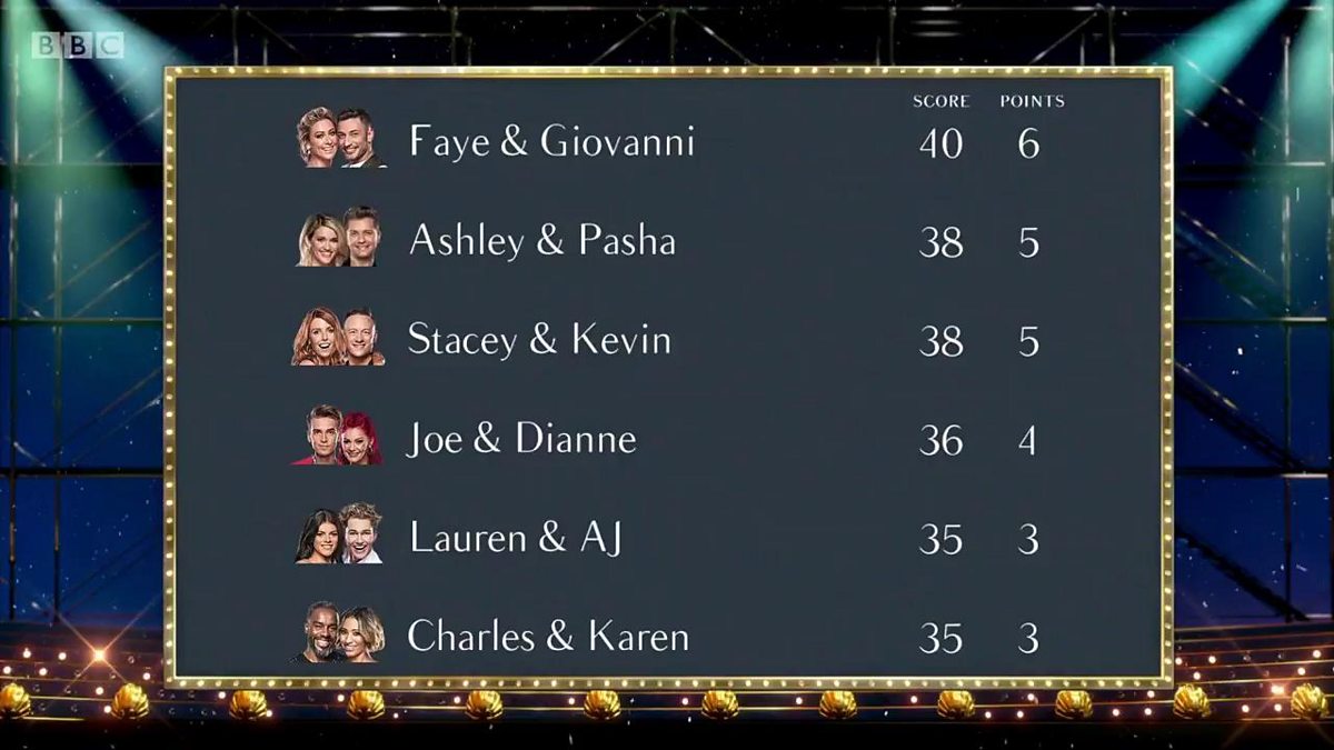 The standard was so high across the board that even the two lowest scoring pairs still managed to get 35 each - Charles and Karen for their Rumba and Lauren and AJ for their American Smooth.
