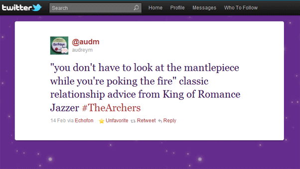 Oh lord, David and Ruth Archer have just scampered off to the lambing sheds for a shag. Cover my ears. (@52Betty on Twitter)