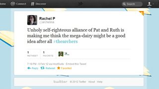 @BBCTheArchers Will someone please give Tony a tin opener so he won't starve to death? (@Messaien on Twitter)