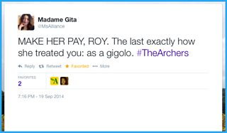 MAKE HER PAY, ROY. The last exactly how she treated you: as a gigolo. #TheArchers (@MsAlliance on Twitter)