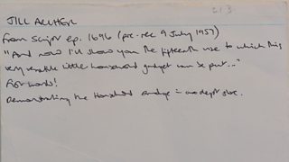 While the audio of the episode in which they met hasn’t survived, we can be sure that Jill isn't mis-remembering because their meeting is recorded on Jill's first archive index card. The card also tells us that while Mitchells was where Jill first laid eyes on Phil it wasn’t where Phil first saw Jill.