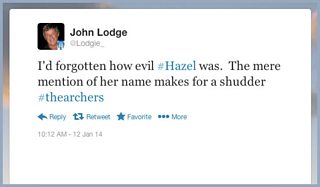 I'd forgotten how evil #Hazel was. The mere mention of her name makes for a shudder #thearchers(@Lodgie_ on Twitter)