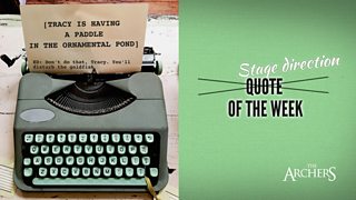 This week's quote of the week is... well... not actually a quote. It's quite possibly our favourite stage direction ever. The setting: Alice and Chris's party.