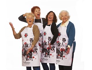Jennifer, that Genoise will have to wait! Lynda, you’ll have to start that batch of Macaroons later! Comic Relief needs you to model their new apron!
