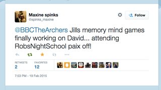 - Follow @BBCTheArchers on Twitter and chat about #thearchers